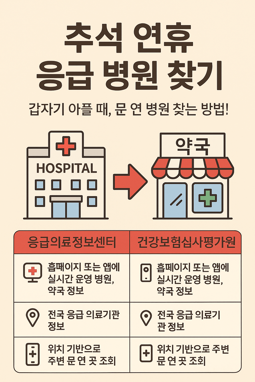 이번 추석, 가족과 행복한 시간을 보내려면 건강이 최우선입니다. 병원·약국 정보, 응급 상황 대처법, 상비약 준비까지 미리 챙겨두면 갑작스러운 상황에도 당황하지 않고 대처할 수 있습니다.